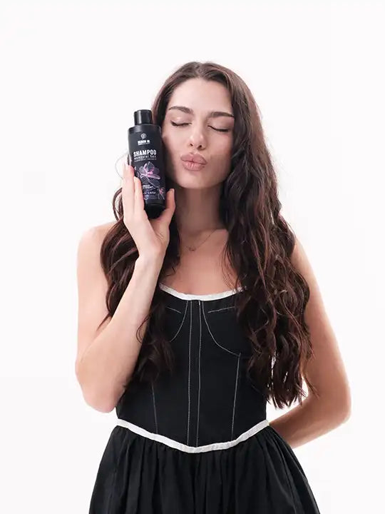 Начин на употреба: Нанесете малко количество (5–10 мл според дължината и гъстотата на косата) върху мокра коса, като го разпределите в петте основни зони на скалпа. Масажирайте нежно с върховете на пръстите, изплакнете обилно и повторете. При второто нанасяне оставете шампоана да подейства 2–3 минути за максимален ефект, след което изплакнете.