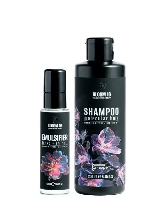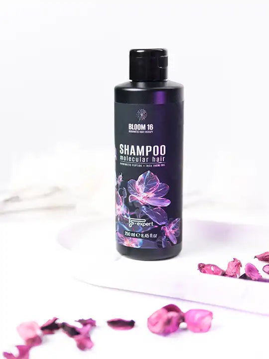 BLOOM 16 Molecular Hair Shampoo е иновативен безсулфатен шампоан, създаден по биомиметична технология за целенасочена регенерация на косъма и грижа за скалпа. Формулата му е обогатена с пребиотици, фитокератин, пептиди и органично масло от Инка Инчи, които възстановяват структурата на косата в дълбочина. Изключително икономичен и нежен, шампоанът съчетава наука и природа за видимо по-здрава, еластична и сияйна коса.