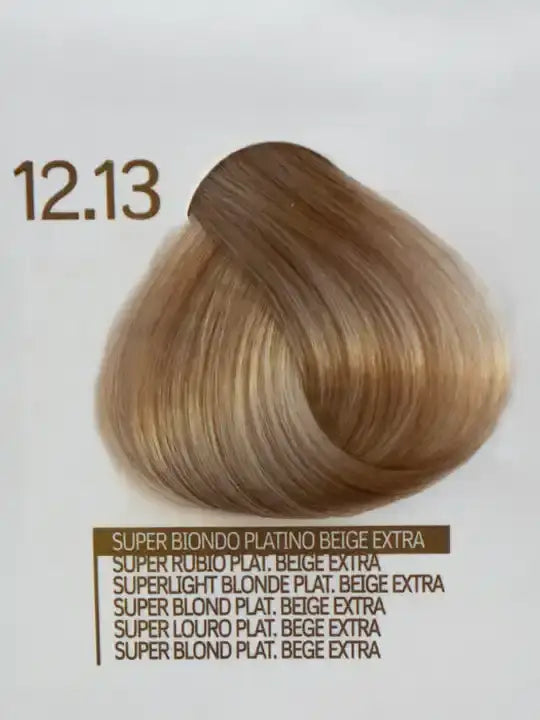 Цвят на коса 12.13 Superlight Blonde Platinum Beige Extra от Design Look, показваща нюансите и текстурата на боята.