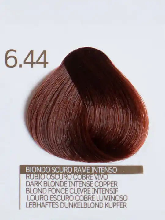 Пример на тъмен светъл кестеняв интензивен меден цвят 6.44 за коса, идеален за боядисване.