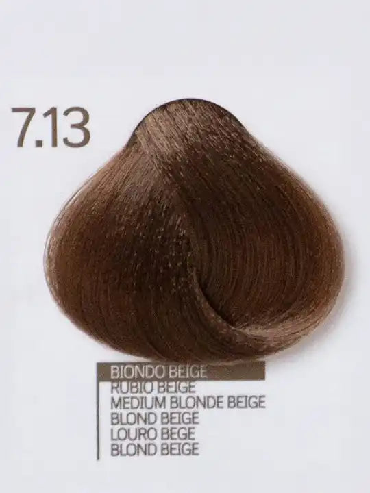 7.13 Medium Blonde Beige hair color sample showcasing a rich, creamy tone ideal for professional use.