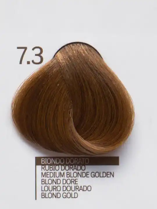 Дизайнерска боя за коса 7.3 Medium Blonde Golden, копринена текстура, топъл златист нюанс.