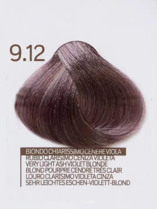 Цвят 9.12 Very Light Ash Light Violet Blonde - италианска боя за коса, крем текстура и кератин.
