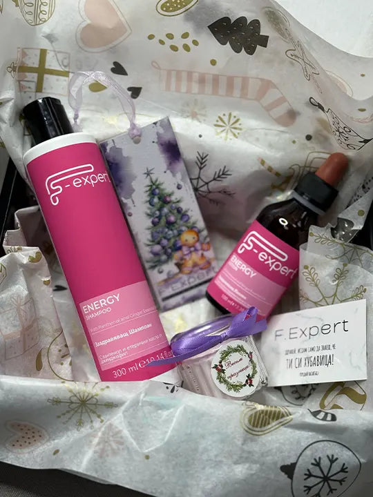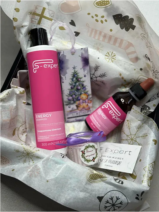 Energy Box с шампоан за здрава коса и коледни аксесоари в подаръчна кутия.