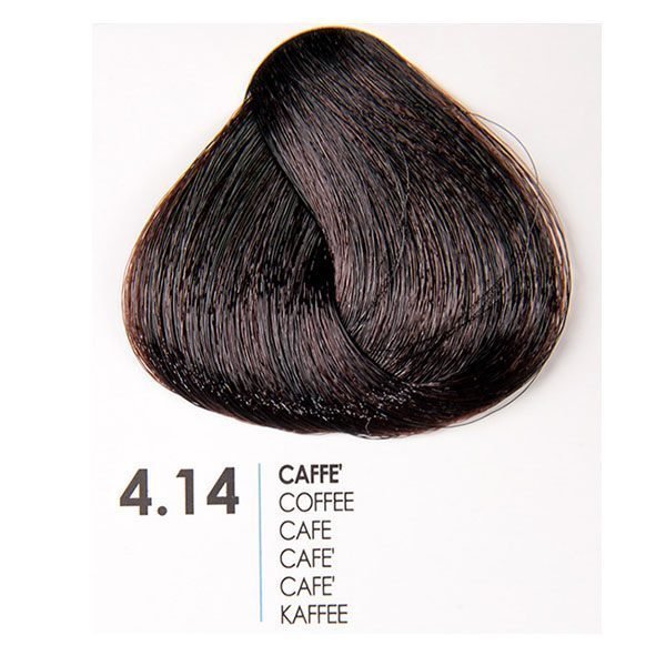 Модел на цветна коса 4.14 Caffe от Fanola, нискоамонячна боя за дълготрайно покритие.