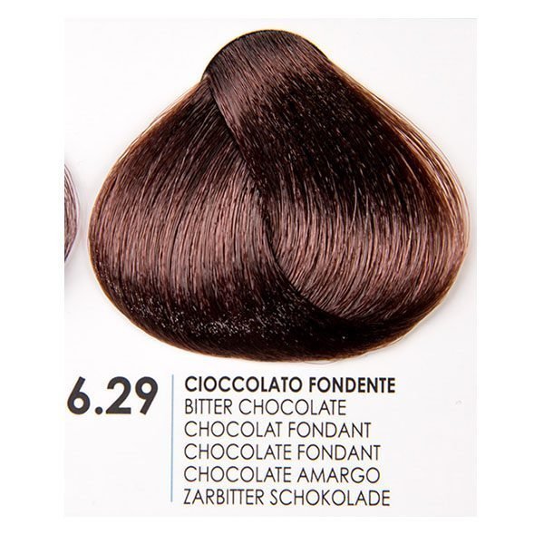Fanola Chocolate 6.29 hair color shade sample, showcasing rich bitter chocolate tones for vibrant coverage.