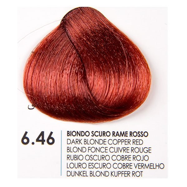 Цвят 6.46 на боя за коса Fanola, тъмен блондин с меден червен нюанс, идеален за покритие на бели коси.