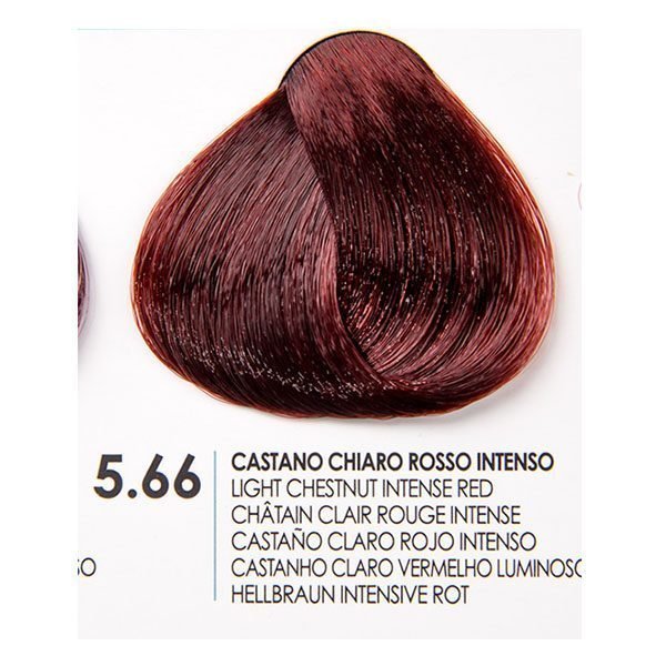 Проба на цвят 5.66 - интензивен червен нюанс, крем боя за коса Fanola с гинко билоба.