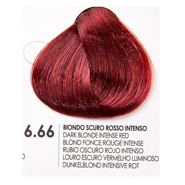 Цвят бои за коса Fanola Intense Red 6.66 - тъмен блондин с интенсивно червено оттенък.