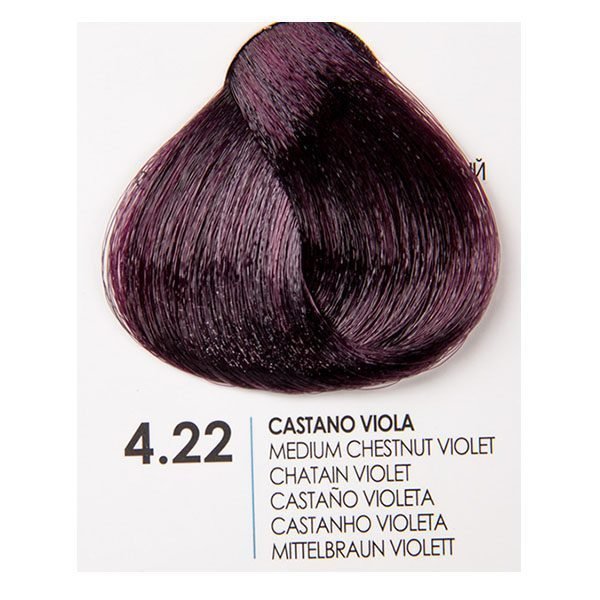 Крем боя за коса Fanola Intense Violet 4.22 с наситен лилав цвят и гинко билоба, осигуряваща дълготрайност.