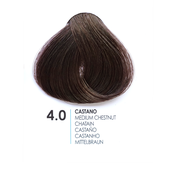 Цветови мостри на боя Fanola 4.0 – среден кестен, интензивен и дълготраен цвят за здрава коса.