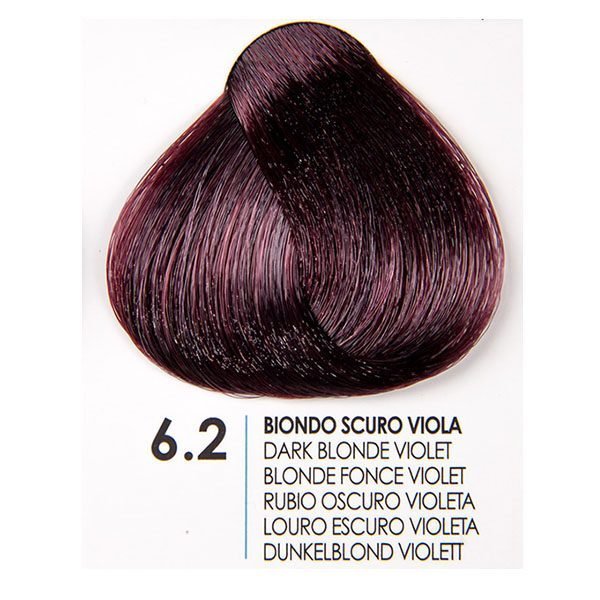 Fanola Viola 6.2 крем боя за коса - тъмен рус лилав нюанс, показващ гладки цветови вариации.