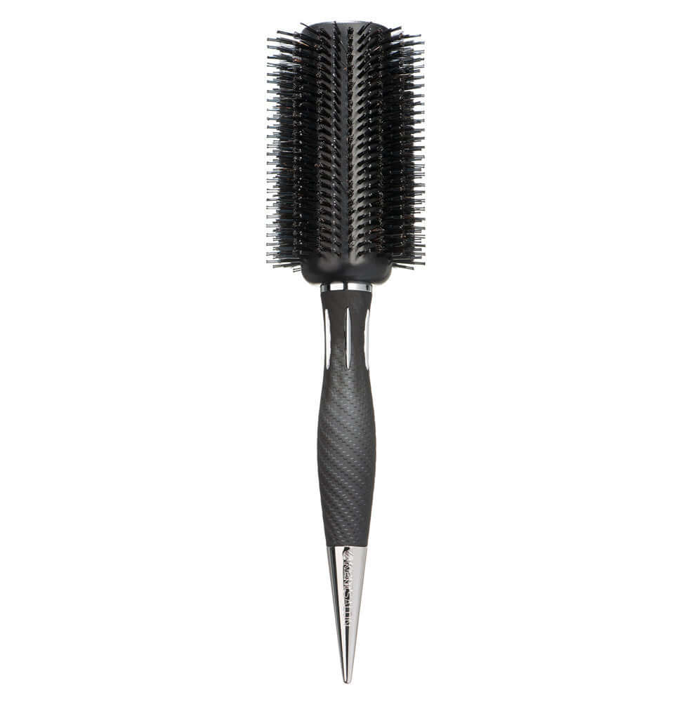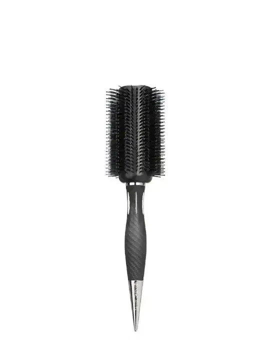 Професионална голяма четка с естествен косъм и термоустойчиви игли – създадена за бързо и ефективно изсушаване и изглаждане на дълга и гъста коса.