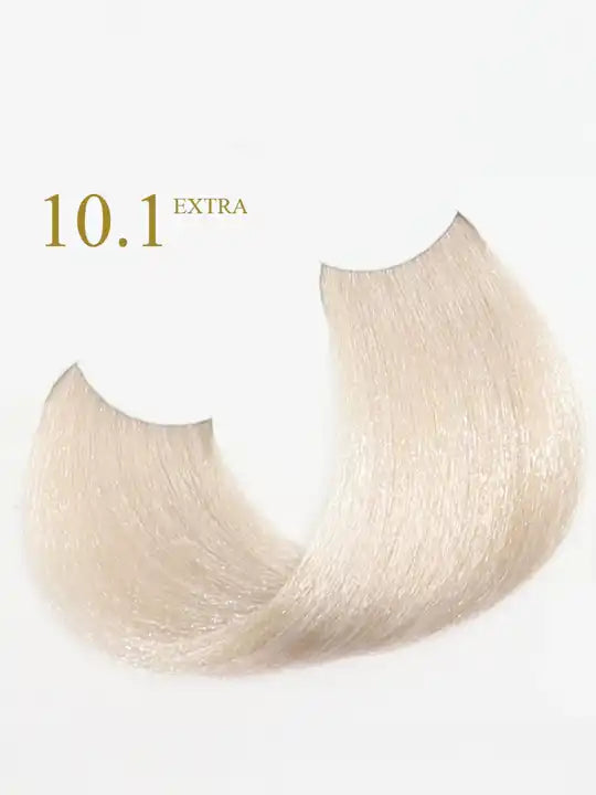 10.1 Blonde Platinum Ash Extra hair color swatch for Oro Therapy professional hair dye.