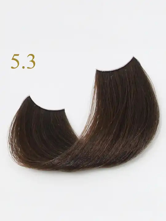 5.3 Light Chestnut Golden hair swatch representing ORO Therapy Color Keratin hair dye.