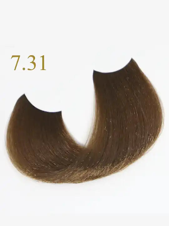 7.31 Blonde Sandy shade from Oro Therapy hair color, showcasing professional ammonia-free formula.