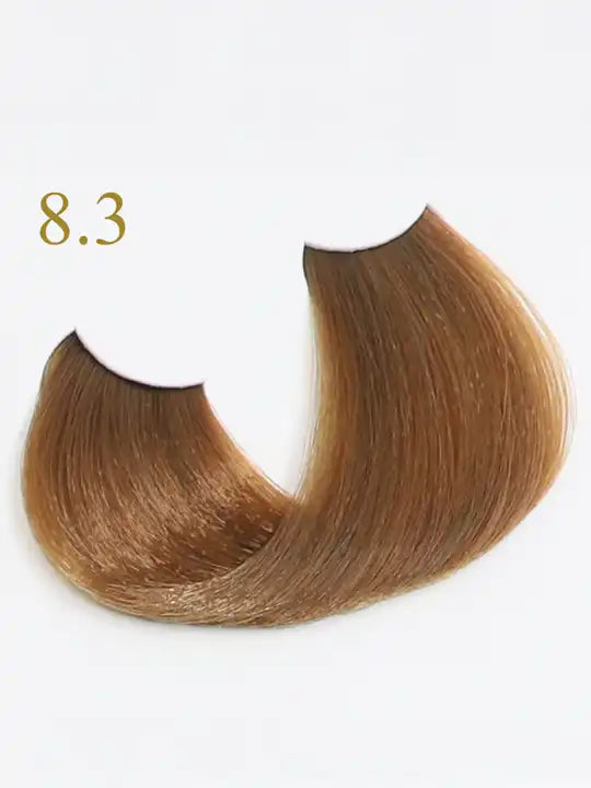 Цвят 8.3 светло блонди златно от боя за коса Oro Therapy, дълбок блясък и красота.