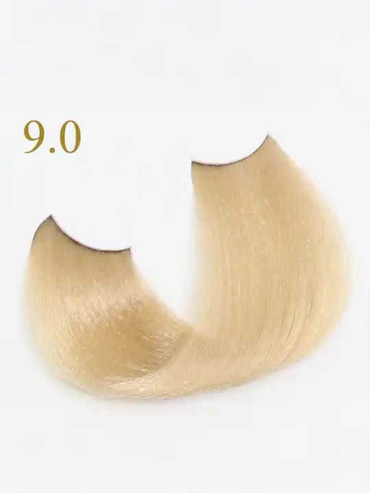 Проба на цвят 9.0 - Много светло блондин с кератин и златен оттенък.