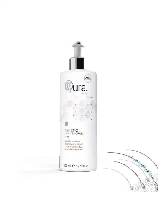 Qura MIMETIC SERUM е професионална терапия за реконструкция и регенерация на силно увредена, третирана или изтощена коса. Създаден на база биомиметична технология и пребиотичен комплекс, серумът възстановява структурата на косъма, подхранва го в дълбочина и активира синтеза на естествени аминокиселини и кератин. Само след 1 процедура се постига незабавен ефект на видимо по-здрава, по-гладка и по-плътна коса. Редовната употреба води до възстановяване на косата отвътре навън – само за 4 седмици.